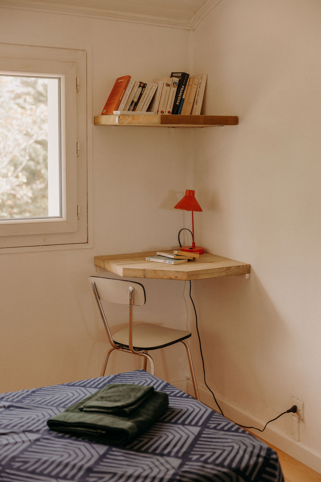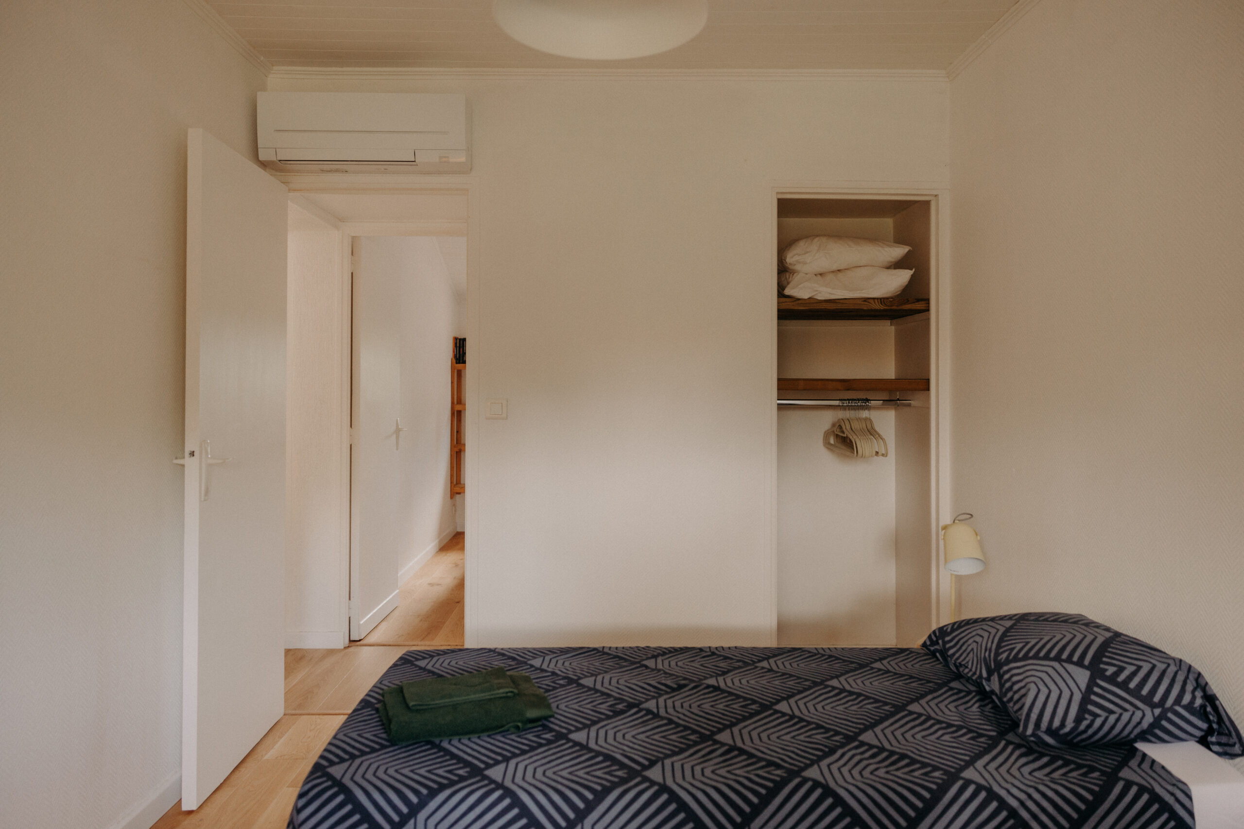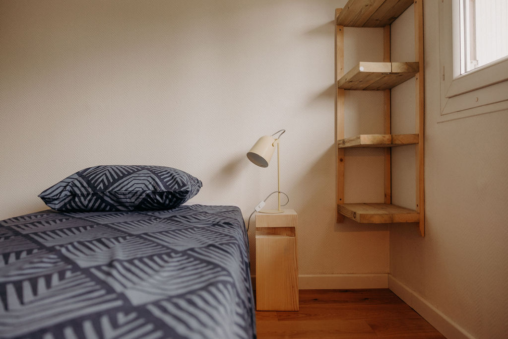 Cette charmante chambre propose deux lits simples, modulables selon vos besoins pour former un grand lit. Vous y trouverez également un spacieux placard, une penderie pour ranger vos affaires, ainsi qu’un petit coin bureau confortable, parfait pour travailler ou se détendre.