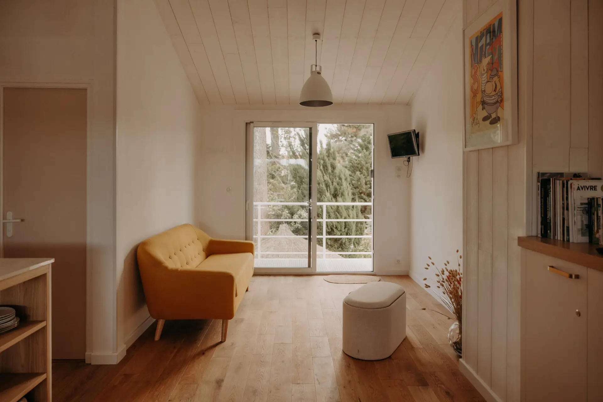 L’appartement, soigneusement décoré et aménagé avec élégance, vous offre tout le confort nécessaire. La cuisine est entièrement équipée, et l’espace est divisé en un agréable séjour et un salon cosy avec canapé. Un coin bureau a été conçu pour vous permettre de travailler en toute tranquillité. Vous serez charmé par la grande baie vitrée qui s’ouvre sur une superbe terrasse offrant une vue imprenable sur le port de La Hume.